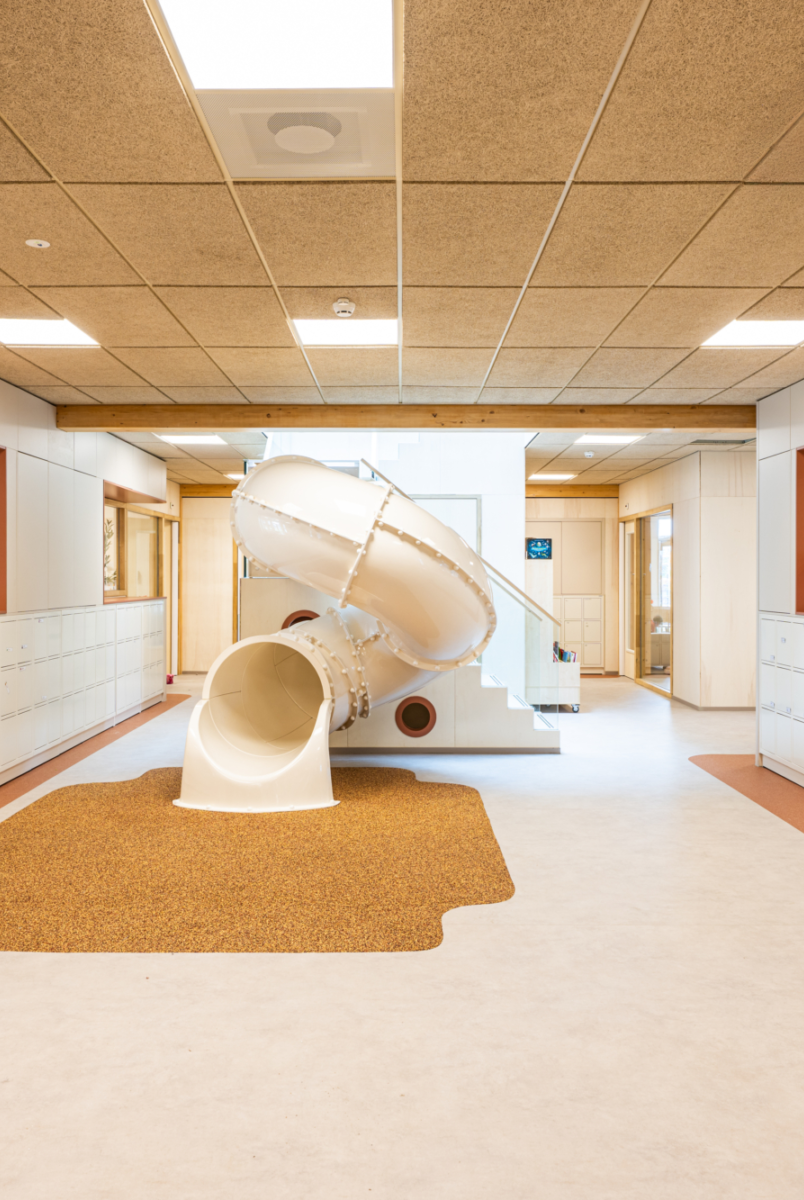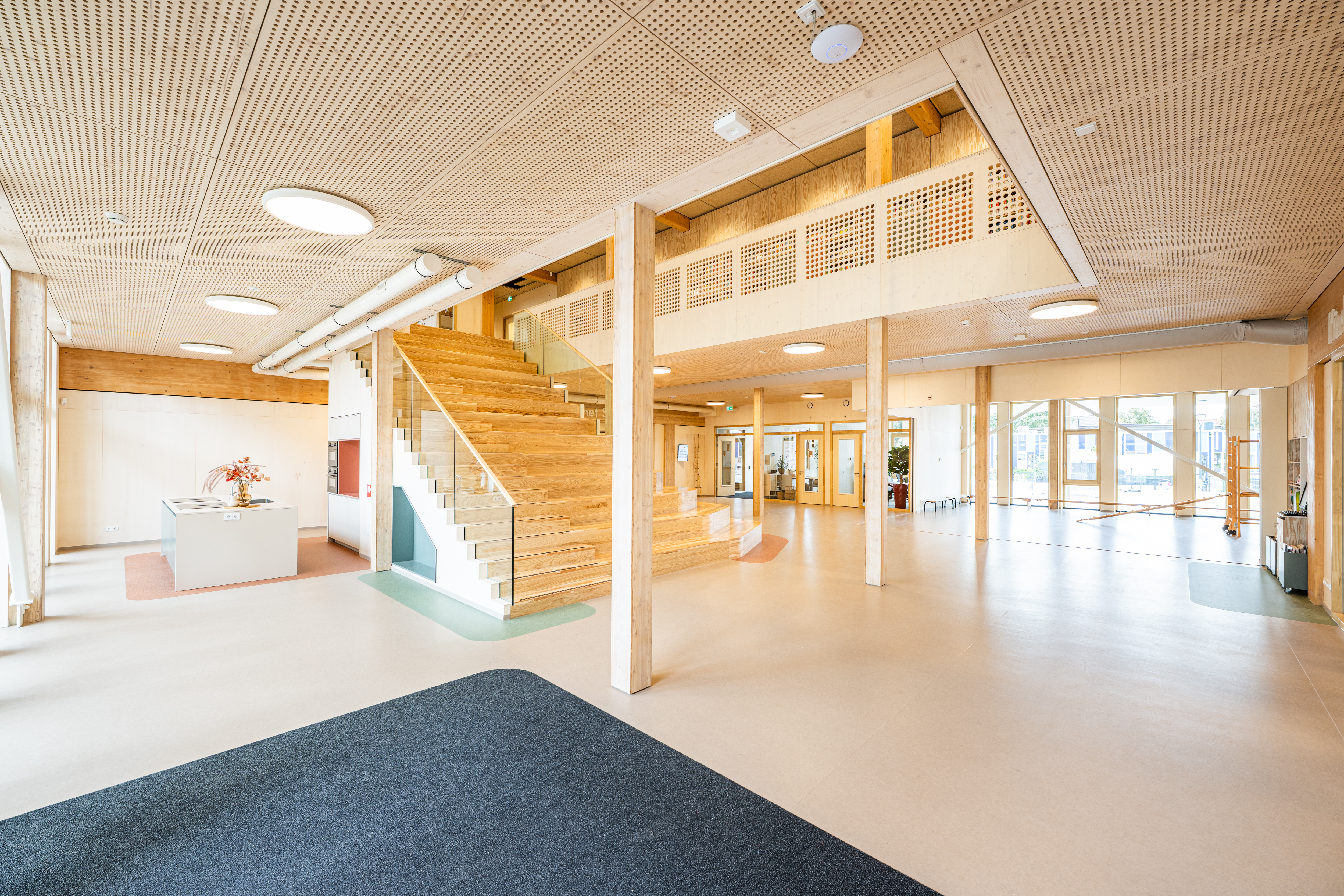 Het gebouw is ontworpen voor optimaal gebruikscomfort voor kinderen, leerkrachten en ouders. Het centrale hart is ruim, licht en overzichtelijk en maakt gebruik van natuurlijke, warme materialen. Korte looplijnen en een groene buitenruimte dragen bij aan veiligheid, spel en ontdekking.